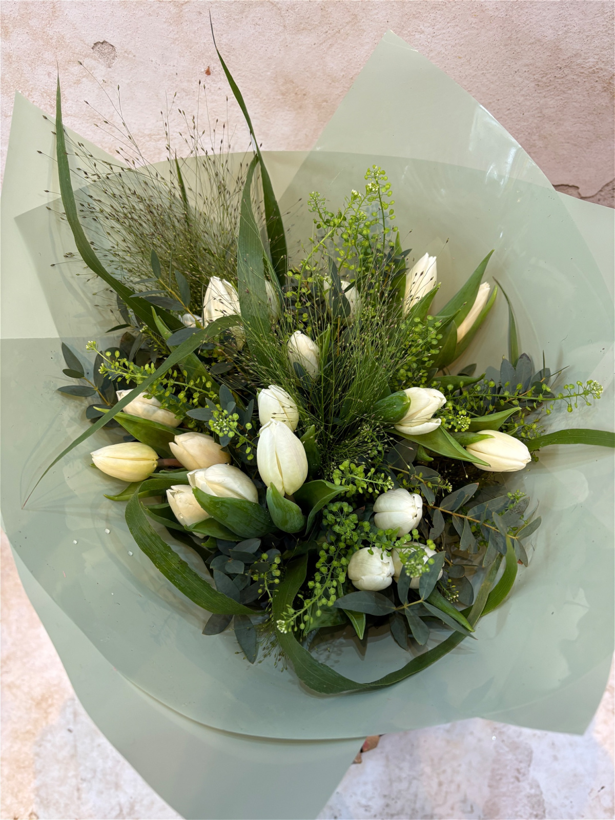 Simple, elegant and effortlessly beautiful, our Minimal Mum bouquet is designed for the mum who loves a clean, natural style. This fresh hand-tied arrangement features delicate white tulips paired with soft seasonal greenery, creating a timeless and calming look that celebrates the beauty of simplicity.